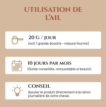 L’Ail est un complément nutritionnel idéal pour les chevaux. Il contribue à :
