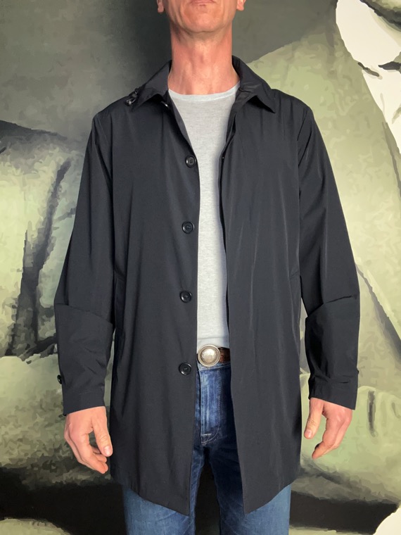Un classique du vestiaire masculin. Facile d’utilisation au quotidien pour un effet moderne chic, à porter par dessus un costume ou avec un jeans et une paire de boots pour le week end. Fabriqué en Bulgarie 78% Polyamide 22% Elasthanne Lavage 30° Imperméable mi-long de couleur marine. Fermeture droite par cinq boutons. Poches passepoilées biaisées de chaque coté. Patte de serrage par boutons aux poignets. Une poche intérieure.