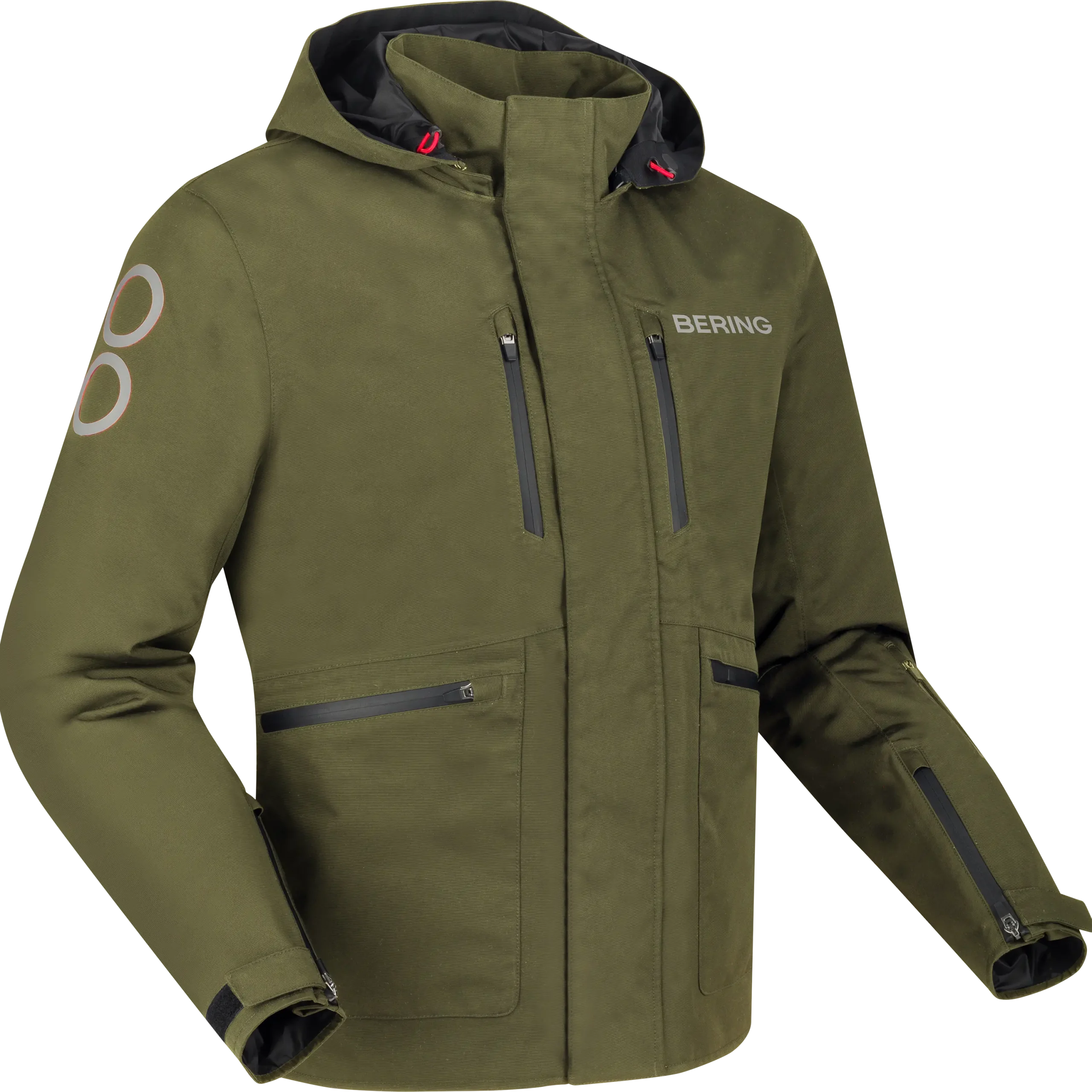 En termes de design, le BARSTOW est sobre et élégant avec un modèle noir et un modèle kaki, rehaussées d’une légère touche de rouge sur les cordons de la capuche. Le logo BERING et le signal sont en relief, ajoutant une touche de sophistication à ce blouson.