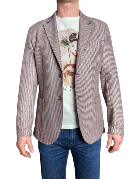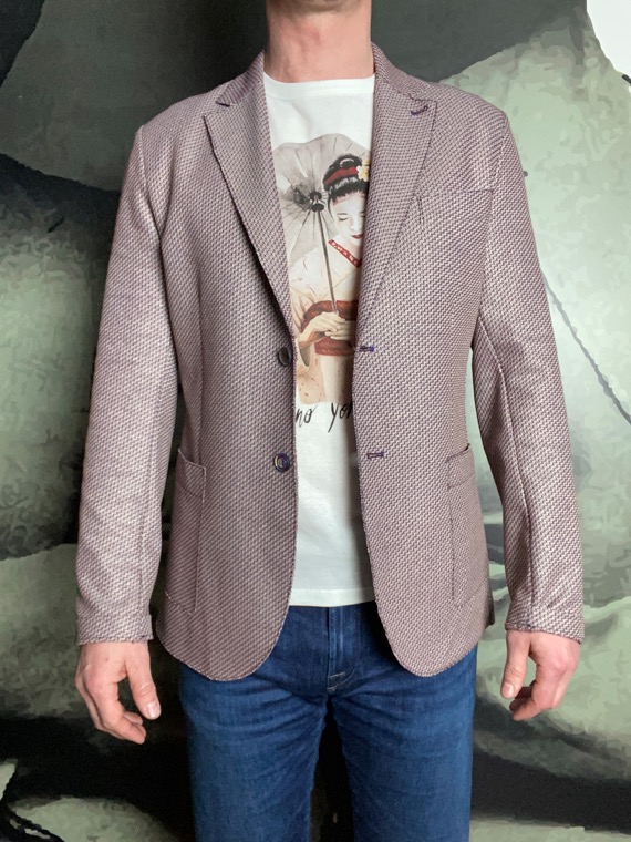 Veste casual chic par excellence. Utilisable facilement avec chemise, t-shirt, jeans et chino voir bermuda. Fabriquée en Italie 91% Coton 9% Elasthanne Nettoyage à sec Veste déstructurée (sans épaulettes pour un effet plus naturel et décontracté) coupe droite deux boutons. Tissu tissée de trois fils, blanc, rouge, bleu. Coupé bord franc sans doublure. Poches plaquées. Poche poitrine.