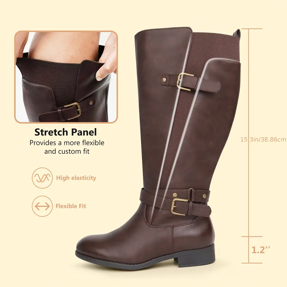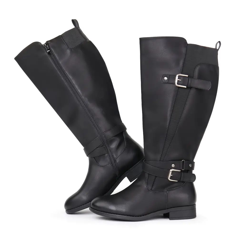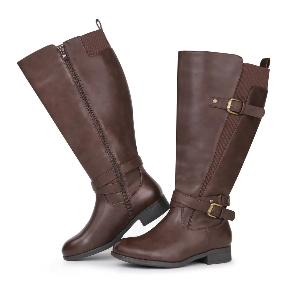 Bottes cavalières femme à bride et boucle – talon bas confortable, look élégant