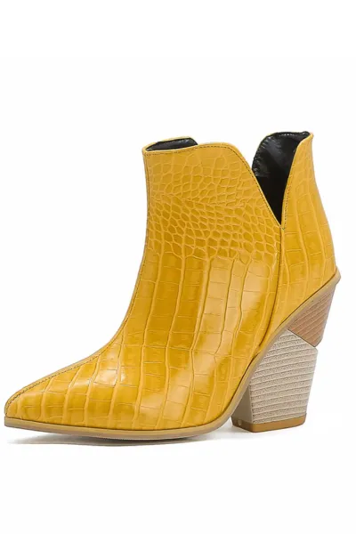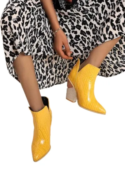 Bottes cowboy femme cuir ✔ Bottes cowboy femme en cuir PU jaune avec détails bleu élégant✔ Talon haut compensé (8 cm+) pour une silhouette élancée✔ Doublure chaude en peluche courte idéale pour mi-saison✔ Style western affirmé avec bout pointu et coupe au-dessus de la cheville✔ Faciles à enfiler, parfaites pour un look audacieux et décontracté✔ Confortables et tendance, elles s’adaptent à tous les styles urbains ou country🛍 Offrez-vous une allure iconique : adoptez ces bottes cowboy femme cuir jaune maintenant !