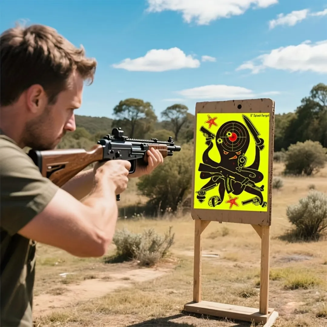 Cette cible inventive est parfaite pour agrémenter vos sessions de tir en extérieur ou en intérieur, ajoutant une touche de fun et de satisfaction visuelle.
