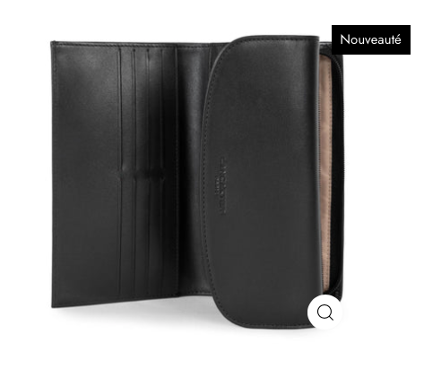 Portefeuille compagnon dos à dos à compartiments en cuir de vachette finition lisse.