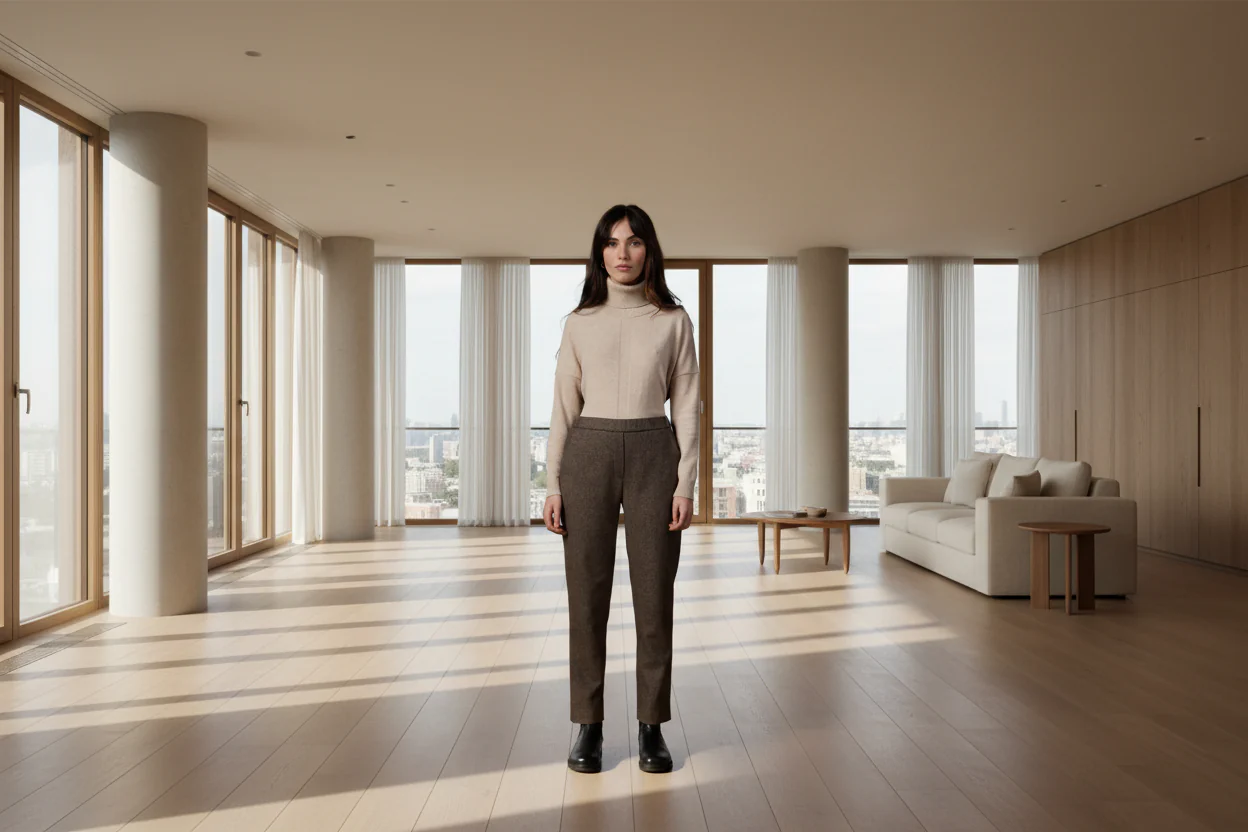 Découvrez notre pantalon DIEGA, conçu pour allier confort et élégance. Doté d’une ceinture élastiquée à l’arrière, il offre une liberté de mouvement incomparable tout en maintenant une silhouette affinée. Le col CHEVRON en taupe apporte une touche de sophistication intemporelle à votre garde-robe. Composé d’un mélange premium de 60% laine, 30% polyester, 5% polyamide et 4% élasthanne, ce pantalon garantit durabilité, thermorégulation et une tenue impeccable au fil des saisons. Disponible en grandes tailles, il célèbre la beauté de chaque morphologie. Un basique raffiné qui devient l’allié indispensable de vos tenues quotidiennes et professionnelles.