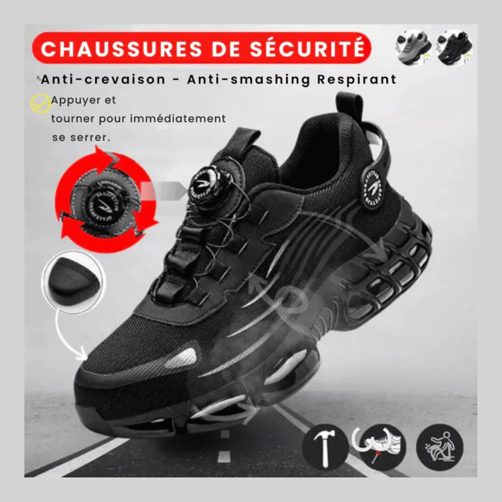 Nos chaussures allient légèreté, confort et robustesse pour une expérience avant-gardiste unique. Dotées de plaques d’acier aux orteils et de semelles anti-perforation, elles offrent une protection optimale contre les chocs et les crevaisons. Idéales pour ceux qui marchent sur des terrains difficiles, elles garantissent style et sécurité sans compromis.