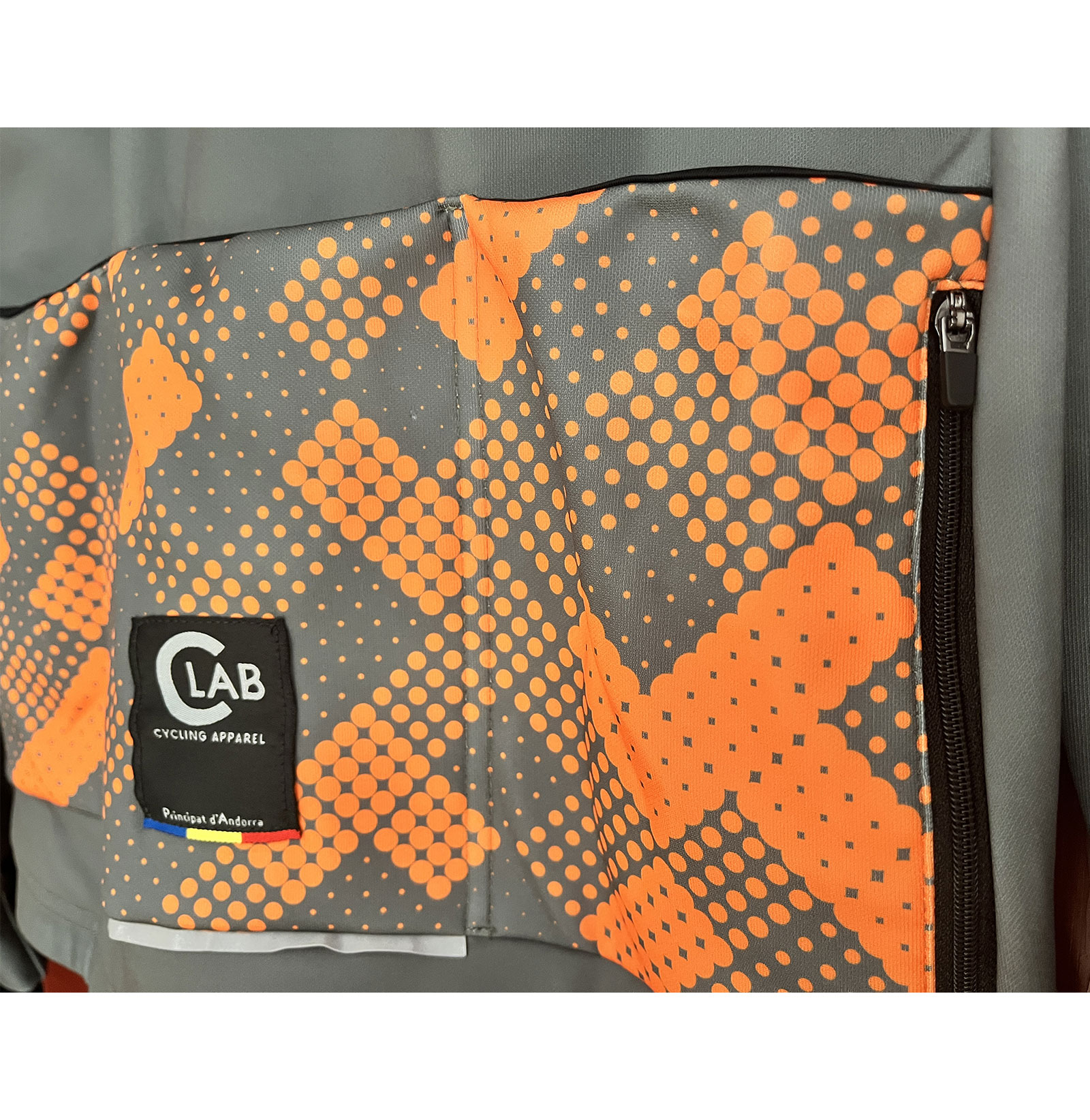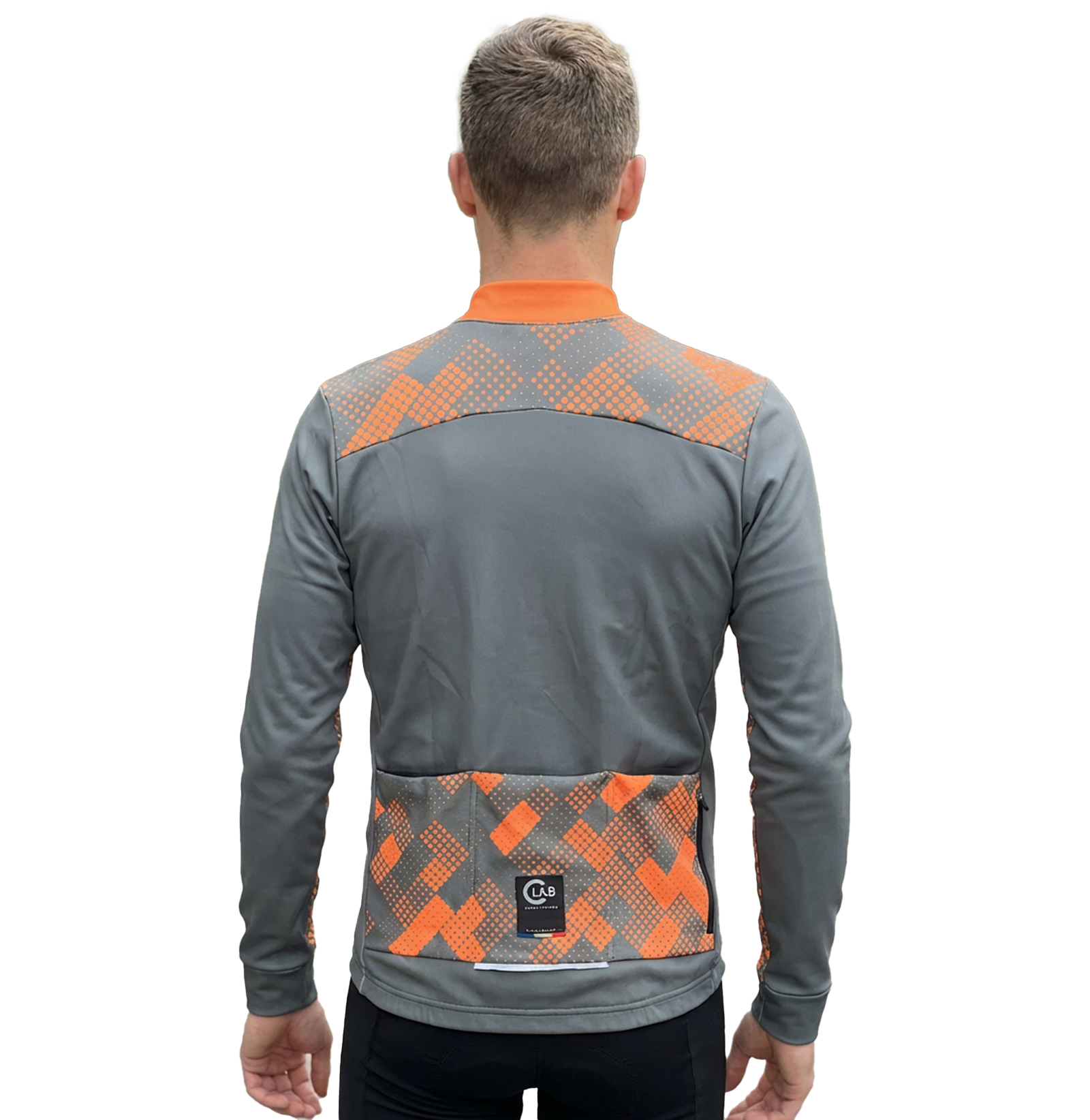 Maillot de Cyclisme Hiver Manches Longues ORDINO Taupe/Orange