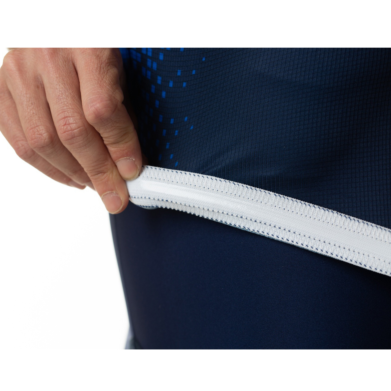 Sur la partie basse intérieure du dos est monté un élastique qui, grâce au silicone appliqué, garantit une parfaite tenue du maillot sur vos hanches, pour un look de pro !