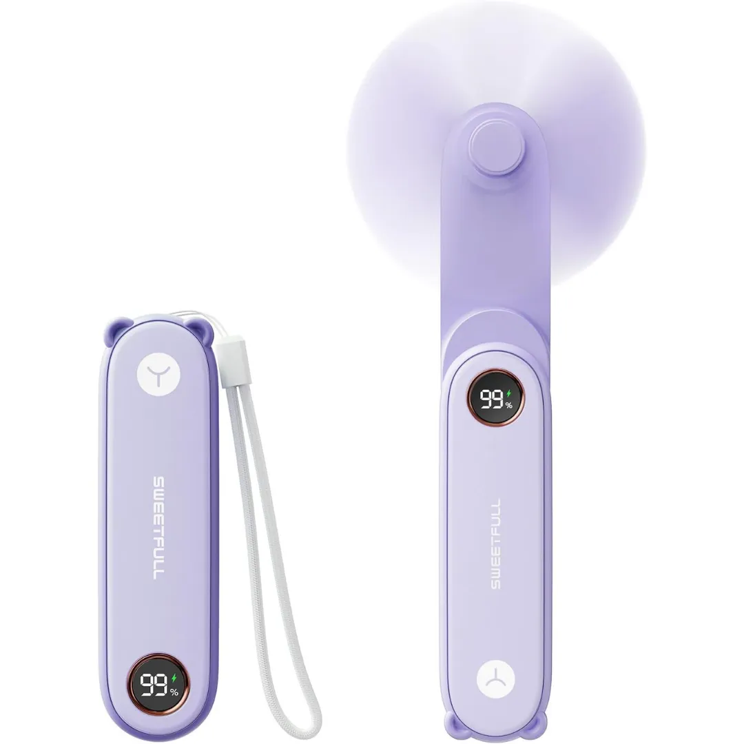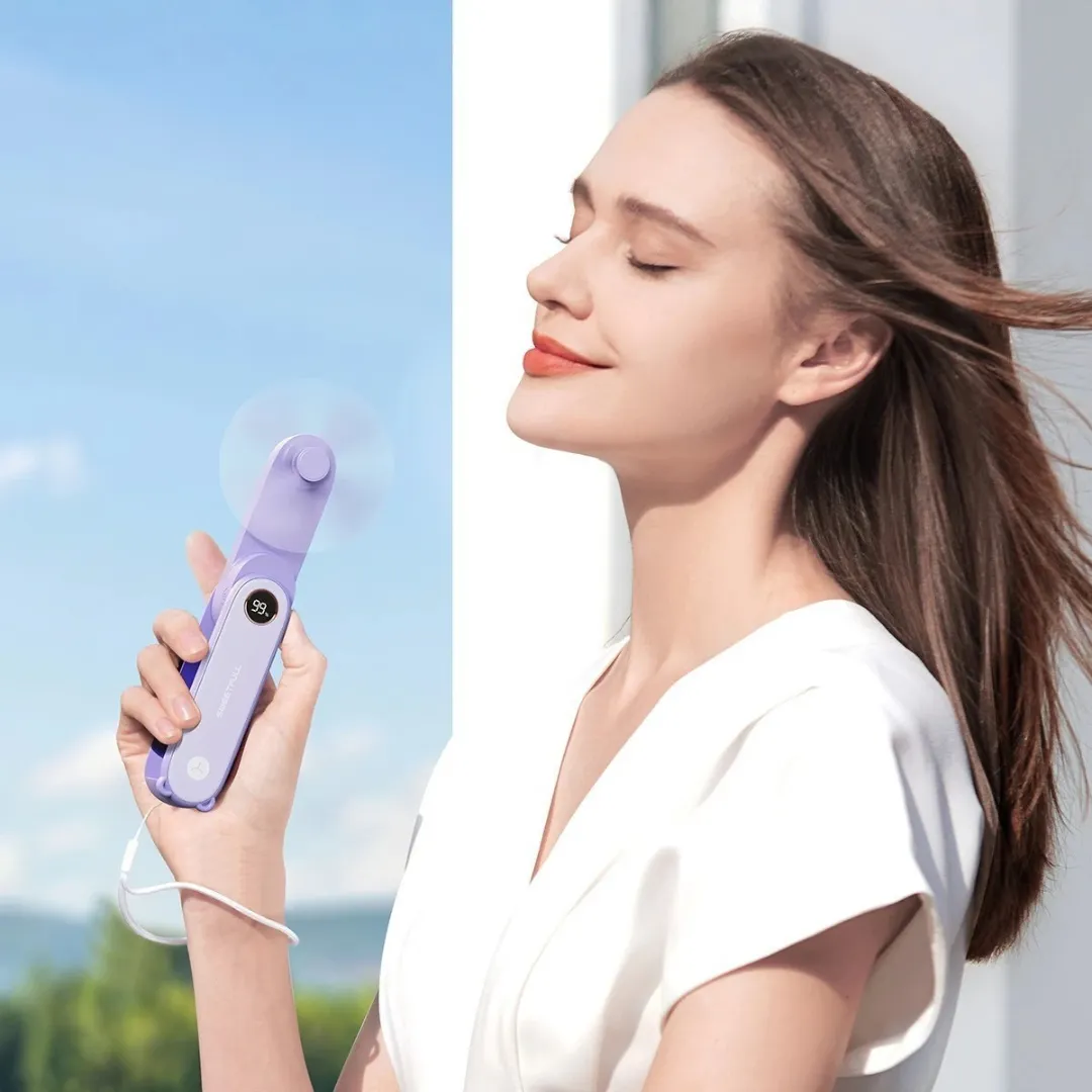- Fonctions : Ventilateur puissant, lampe de poche LED et batterie externe intégrée.
