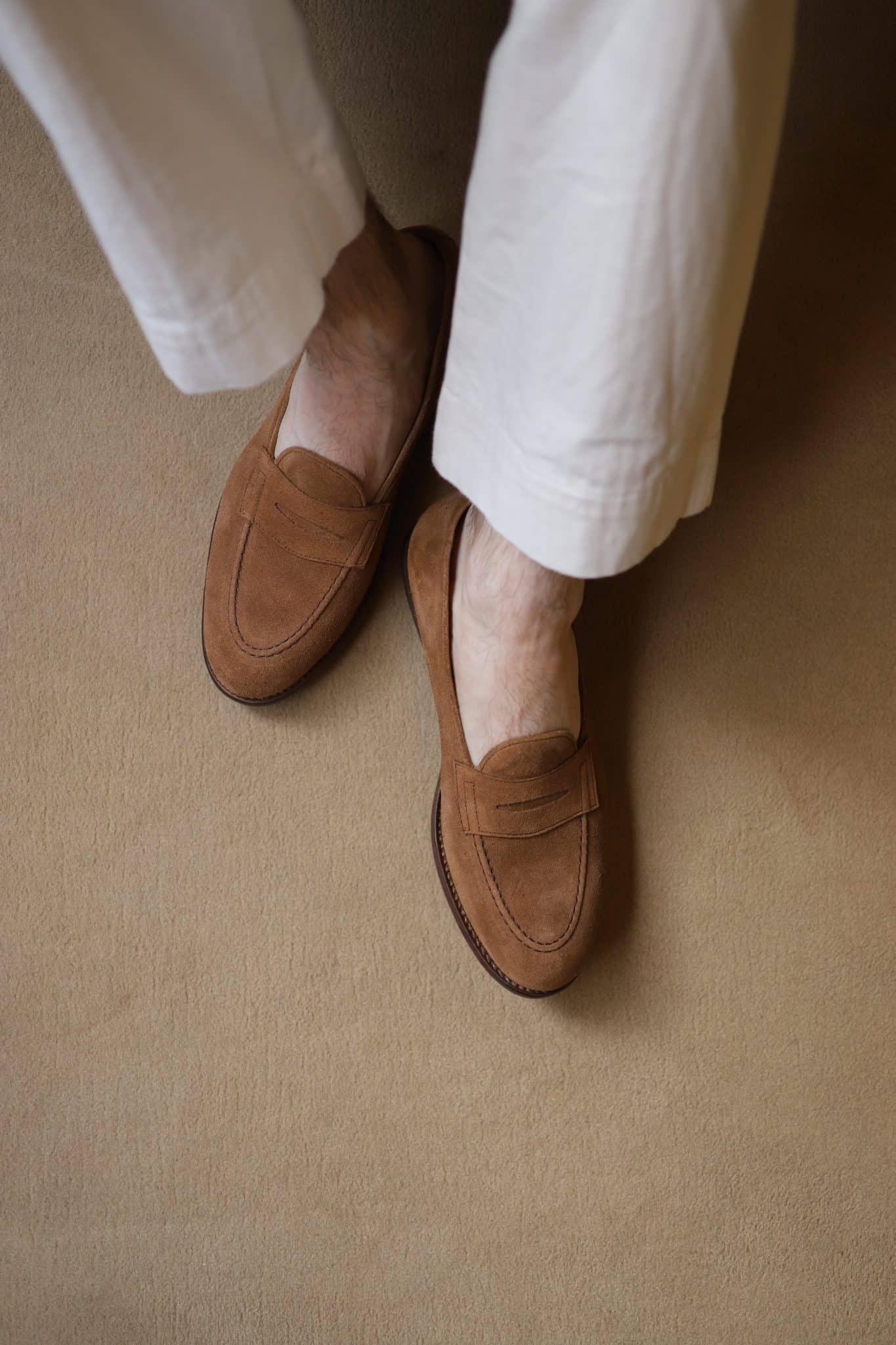 Oh this long-awaited, much desired loafer is finally here! Let’s pamper this impeccably cut, well-balanced, generously strapped penny loafer, a beautiful rounded nose (the last 275, a very american inspired roundness that you’ll find on our Goodwood!). A shoe for summer and winter, for spring too … or for fall, otherwise. Indeed, the Newport will go round the calendar as easily as it will of your wardrobe, for many happy combinations to come, marrying perfectly cashmere pants, Prince of Wales or tennis stripes, linen chinos… even shorts, in the hot heart of summer. Our Newport is…