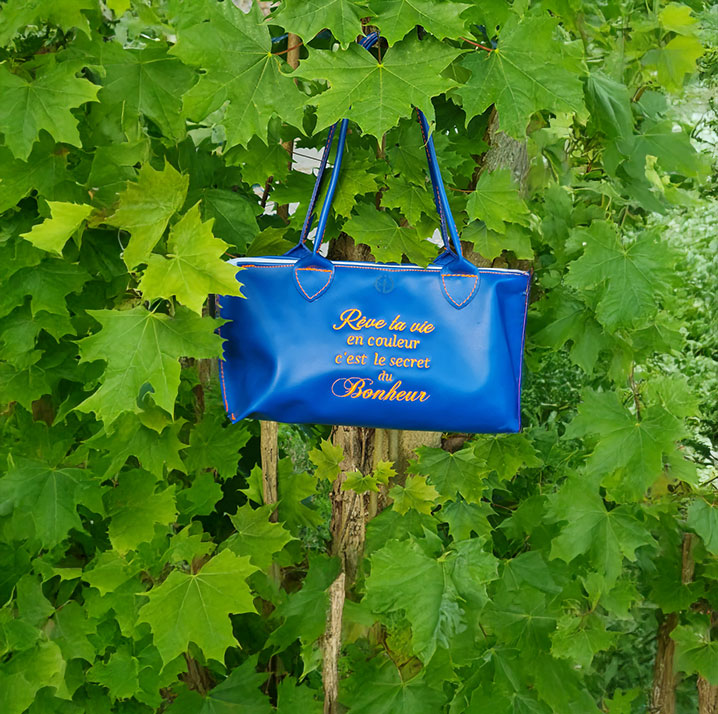 Petit sac à main en cuir véritable, confectionné à la main dans notre atelier du Grand-Fougeray. Sa teinte bleu électrique attire les regards, tandis que sa broderie dorée “Rêve ta vie en couleur, c’est le secret du bonheur” diffuse une bonne dose d’optimisme à chaque sortie. Format compact, style affirmé : un sac unique pour illuminer votre quotidien.