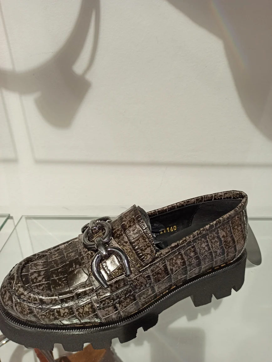 Découvrez l’élégance authentique du mocassin Pons Quintana en cuir gris foncé, sublimé par une texture façon croco raffinée. Sa semelle en gomme assure confort et adhérence tout au long de la journée, tandis que la boucle en bronze mat apporte une touche sophistiquée et discrète. Alliant tradition et modernité, ce mocassin expertement confectionné est idéal pour ceux qui recherchent style durable et confort optimal.
