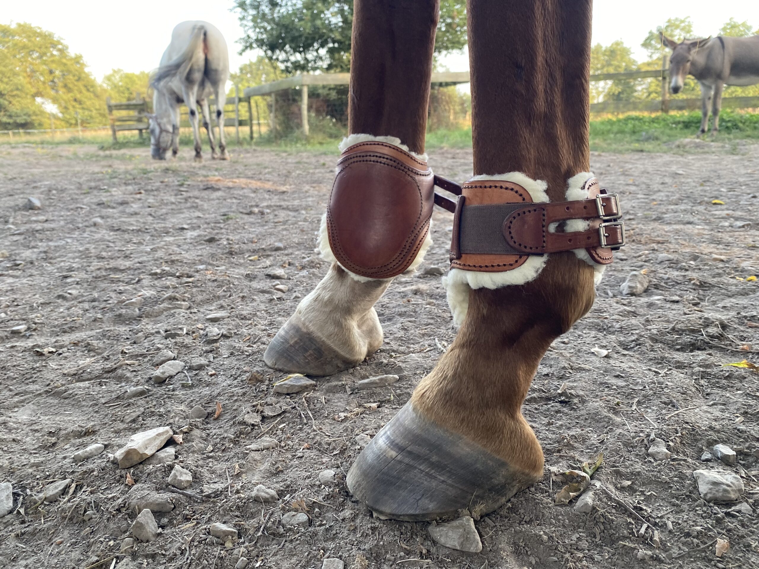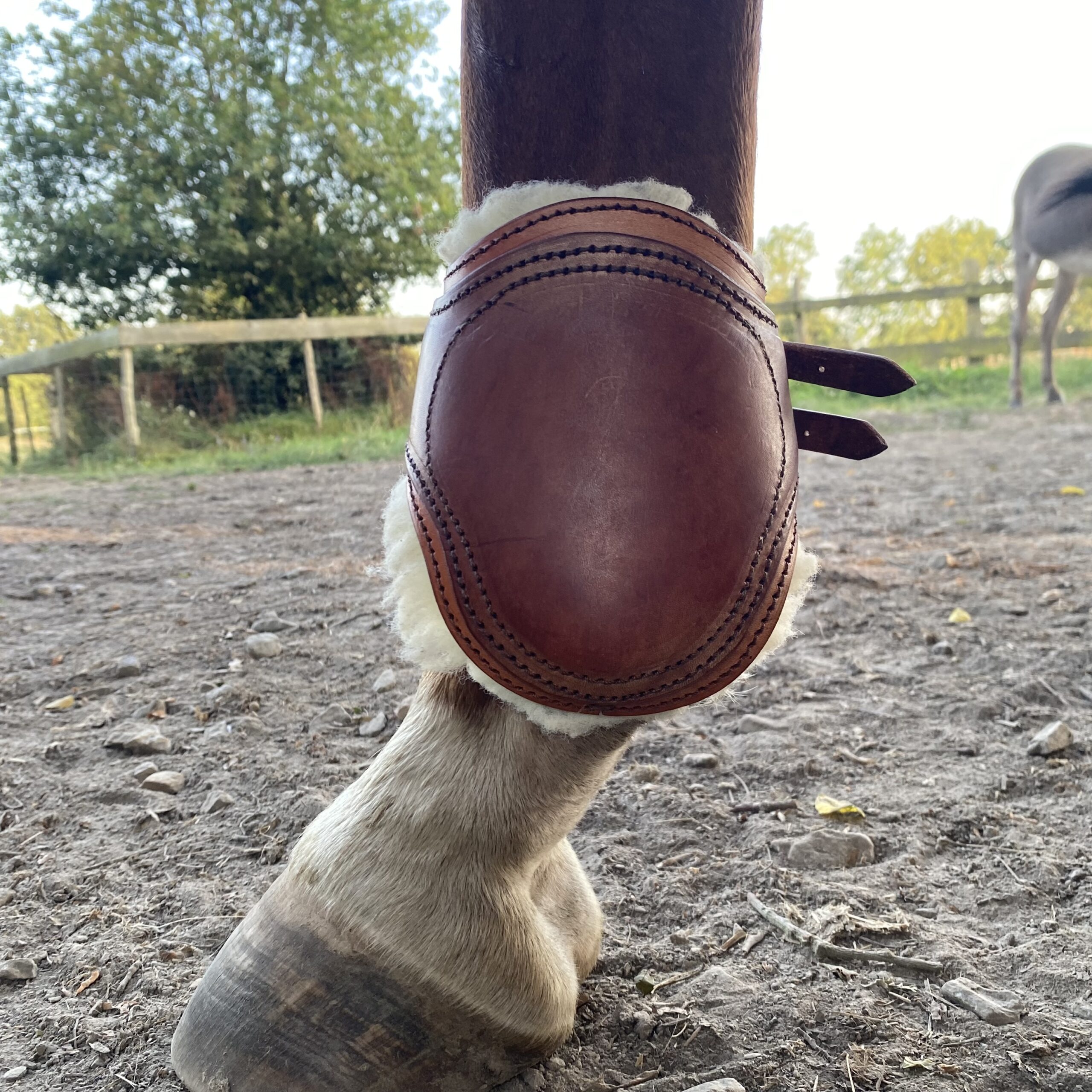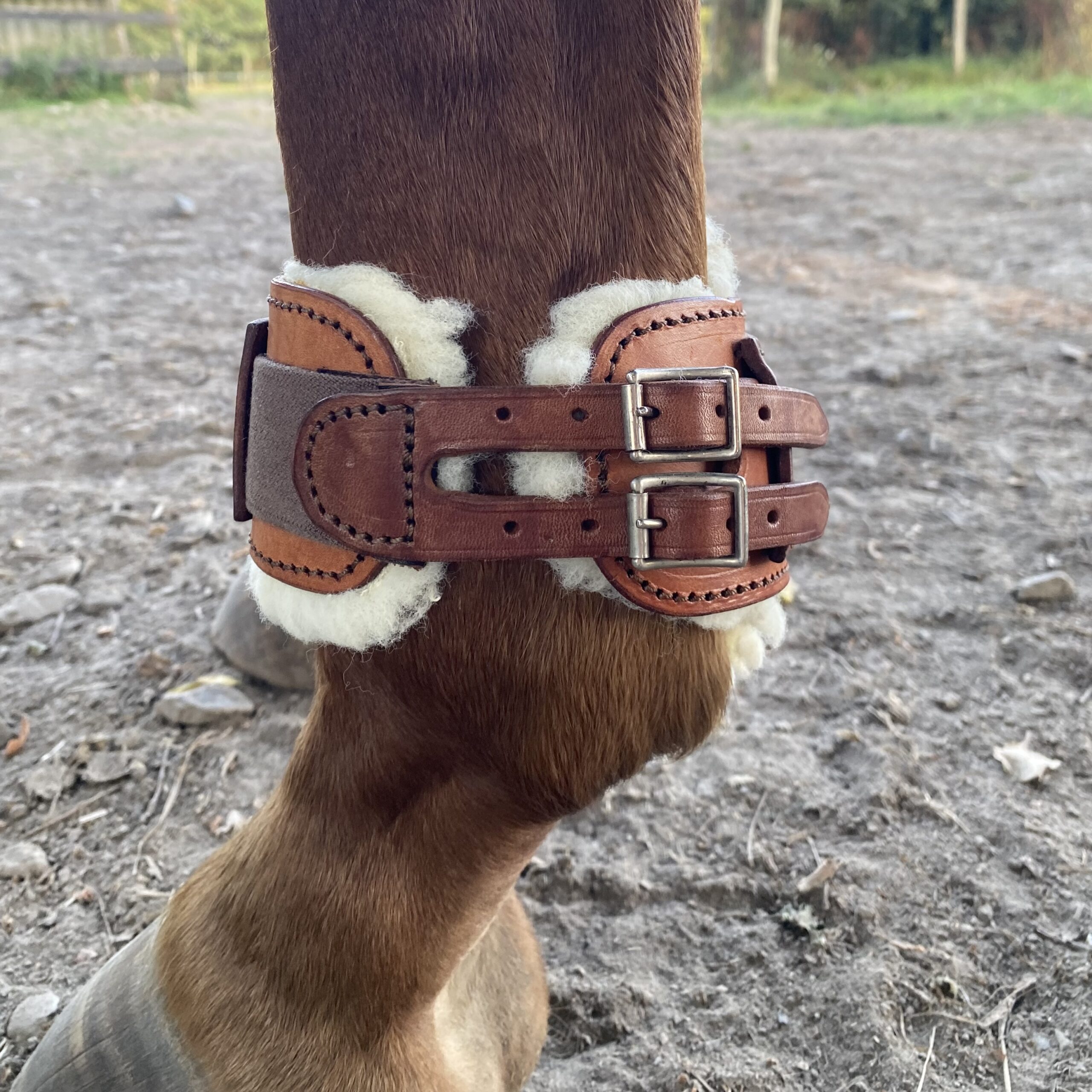 Protections – Protèges Boulets en Cuir Faits Main Doublés Moumoute Papaya – De Cuirs et de Crins