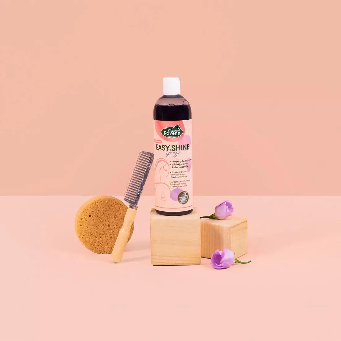 Fabriqué en France Flacon en plastique 100% recyclé Idéal chevaux gris ou clairs Shampooing action déjaunissante Soin respectueux du pH de la peau de votre cheval